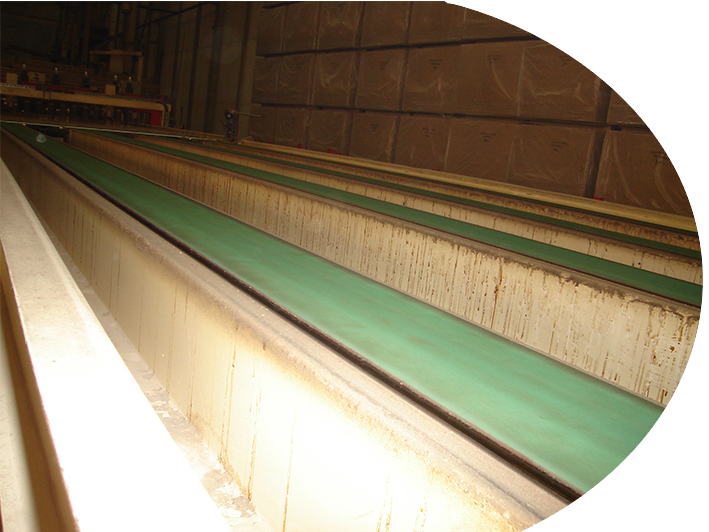 PVC industrial belts. Excellent resistance to abrasion, better than some elastomers,